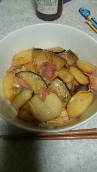 じゃがいもと、なすと、ベーコン入ってる。
